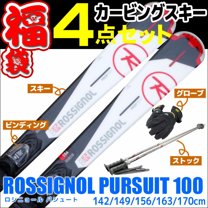 【スキー福袋】4点セット ロシニョール カービングスキー 15-16 ROSSIGNOL PURSUIT 100 149/156/163/170cm Xelium 金具付き ストック付き グローブ付き【送料無料】【RCP】